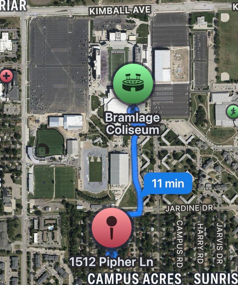 Located just footsteps away from all the K-State sporting complexes, this family friendly get away is the perfect cozy spot for anyone who wants to take the hustle and bustle out of getting to and from the stadiums. Nestled in the heart of Manhattan allows you to get to any of the local attractions in short order.